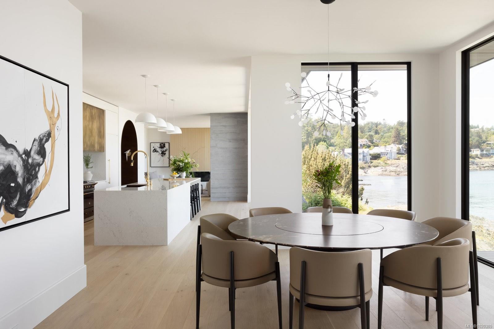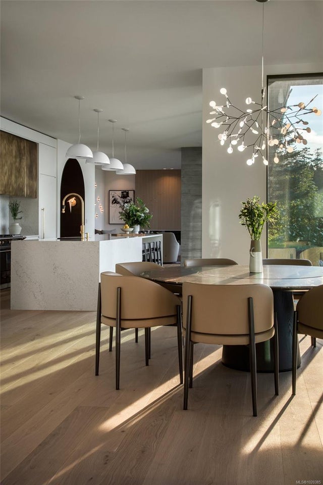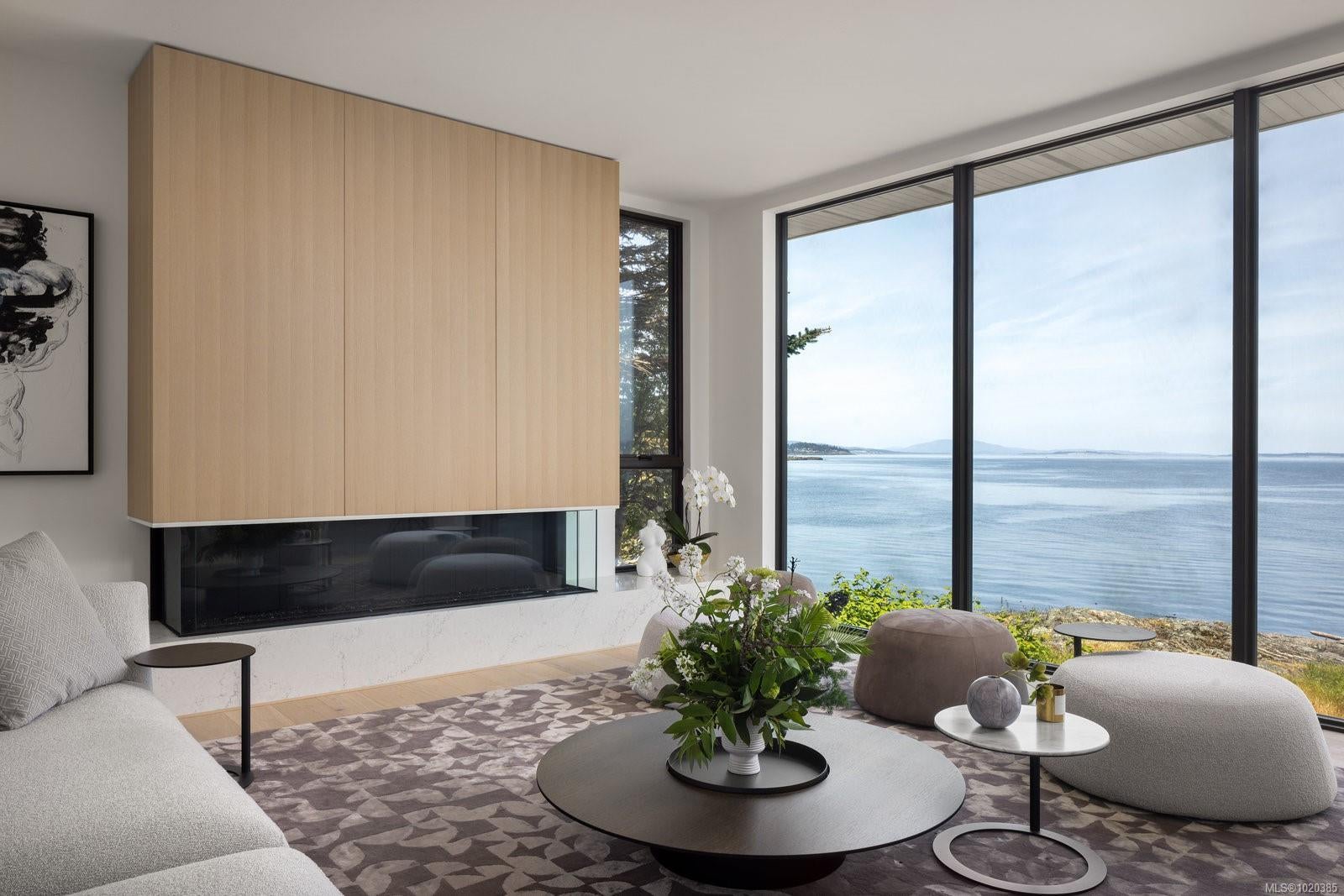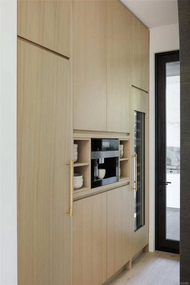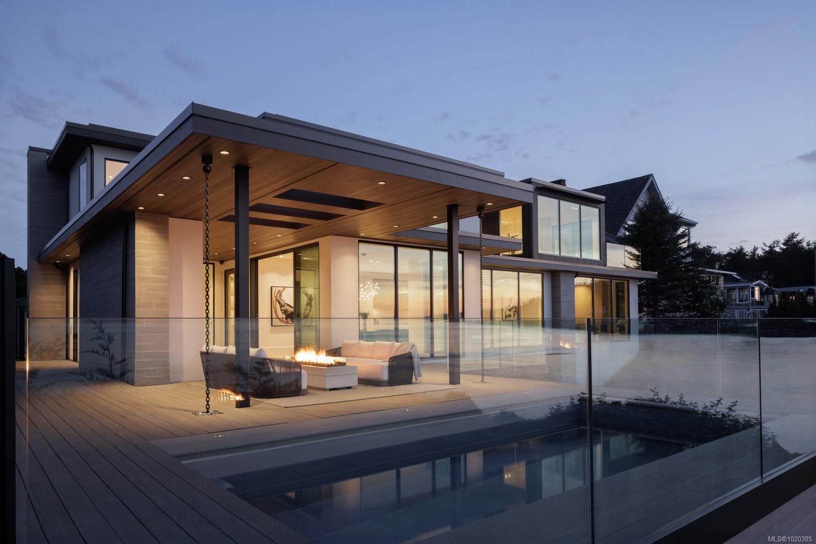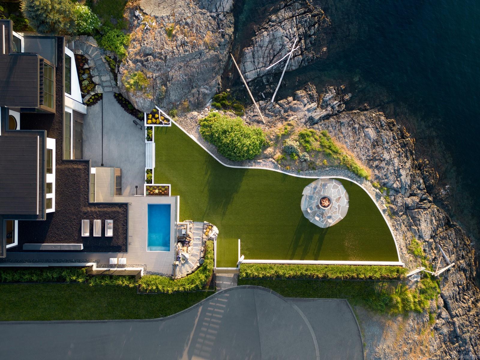 Experience Unparalleled Luxury at Vista del Mare. Perfectly positioned on over half an acre of prime waterfront in the prestigious Ten Mile Point, this architectural masterpiece by Robert Blaney, brought to life by Terry Johal Developments, promises to leave you breathless. Winner of 4 CARE Awards, including Best Single Family Detached Home, Best Innovative Feature, Best Primary Suite and Best Custom Millwork. Step into grandeur with 10-foot ceilings and a show-stopping steel and white oak floating spiral staircase that sets the tone for the rest of this captivating home. The expansive floor-to-ceiling windows on all three levels not only flood the interior with natural light but also offer uninterrupted views of Haro Strait and San Juan Island, making every room a visual delight. The neutral colour palette, accented by targeted designer lighting, creates an ambiance that is both clean and invigorating. The main floor's open-plan design maximizes these ocean views, seamlessly integrating the living, dining, and kitchen areas for effortless entertaining and everyday living. The sky-lit covered patio, adjacent to your complete outdoor kitchen with a deluxe Hestan grill and Fontana Forni pizza oven - imported from Italy- allows for al fresco dining with the backdrop of stunning seascapes, with the occasional killer whale and aurora borealis sighting. Enjoy a dip in the heated pool, followed by a rinse in the outdoor shower. Car enthusiasts will appreciate the attached three-car garage, equipped with two vehicle elevators. Above the garage, a separate, well-insulated guest suite offers a private living area, bedroom, and full bath.
