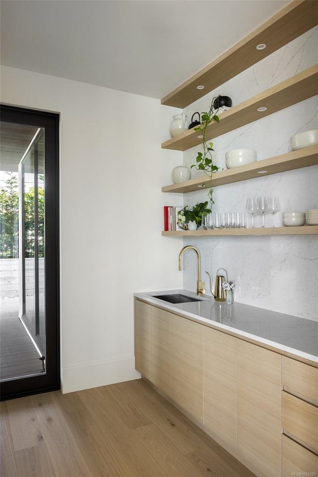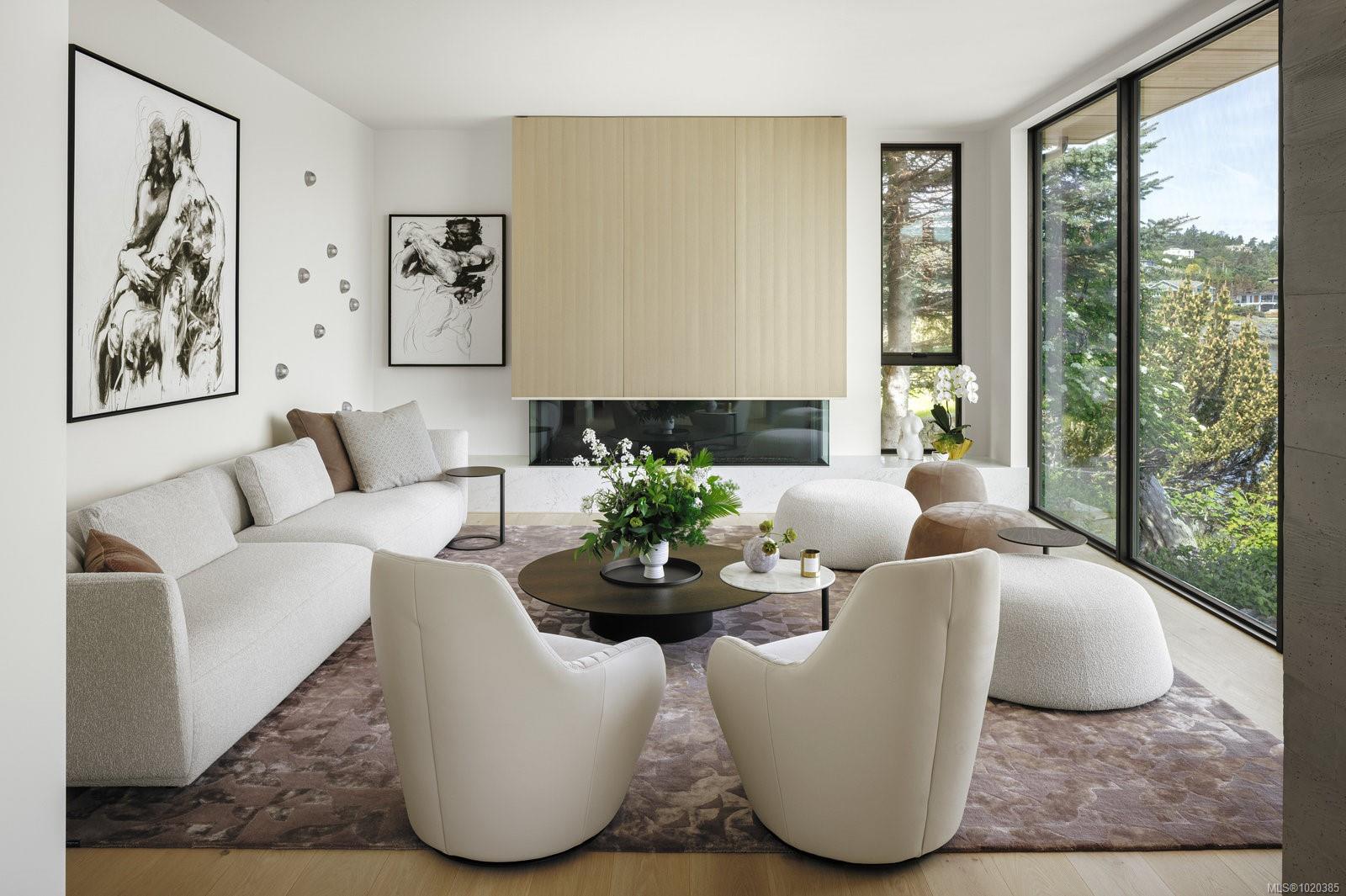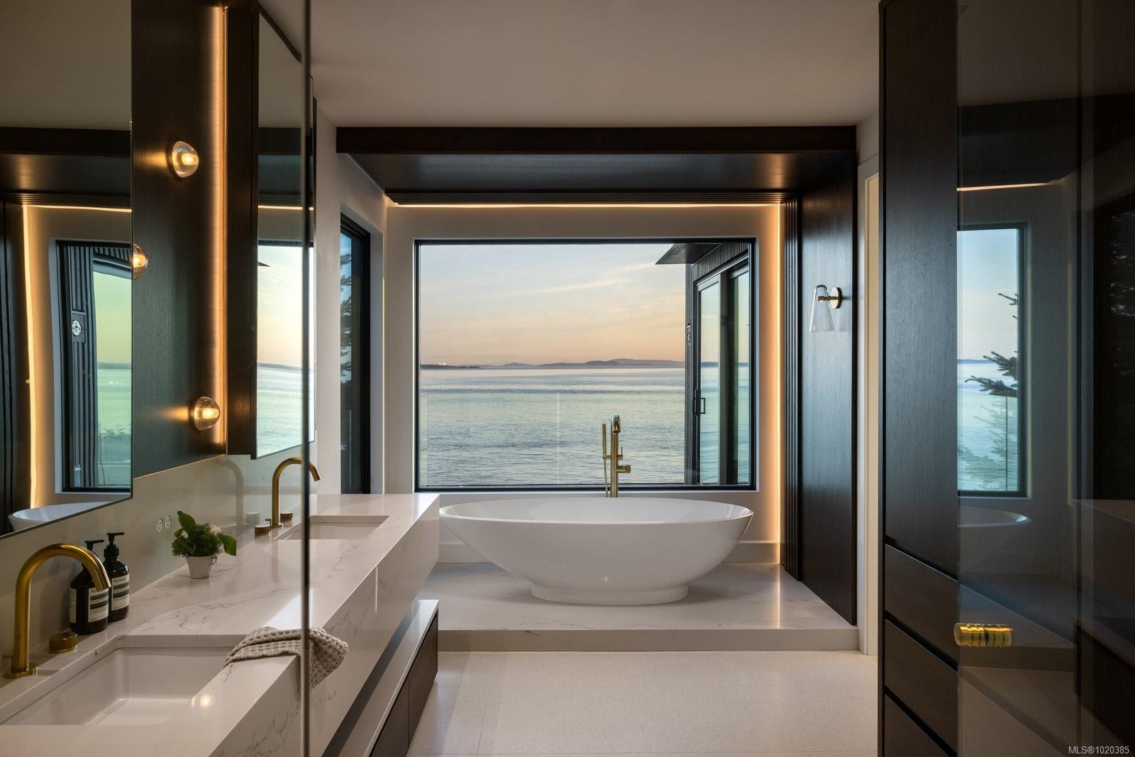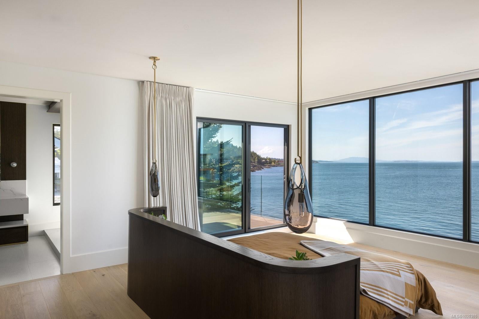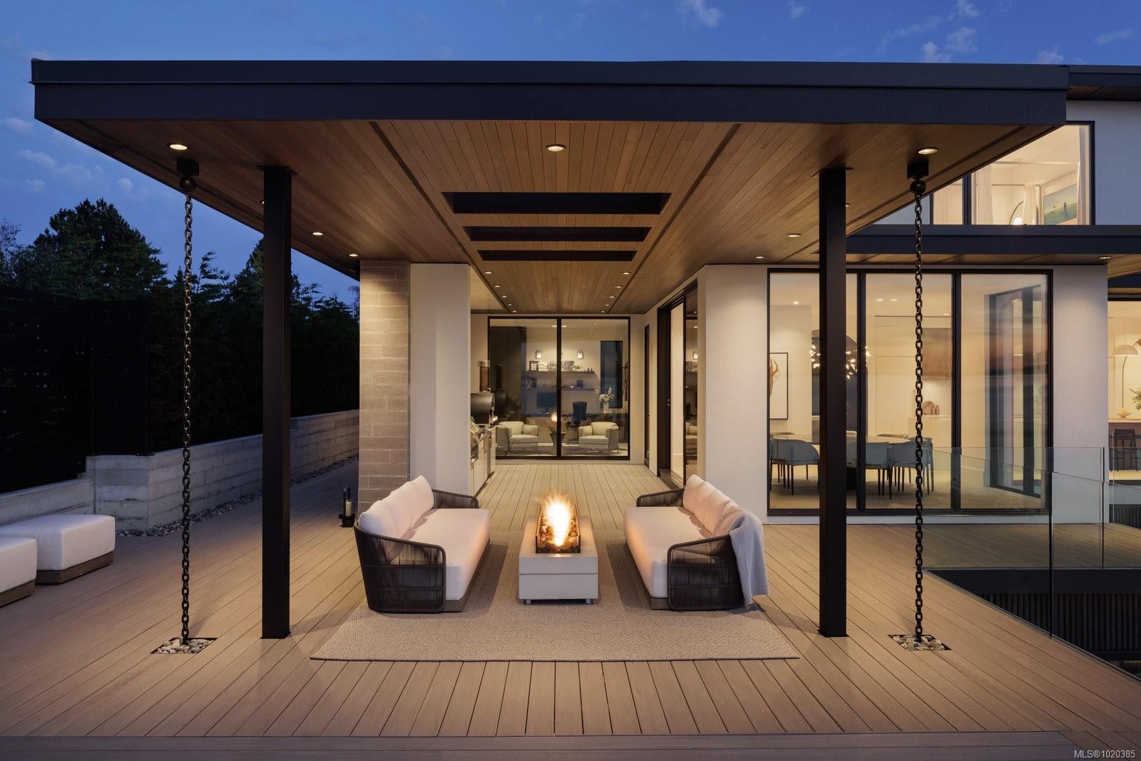 Experience Unparalleled Luxury at Vista del Mare. Perfectly positioned on over half an acre of prime waterfront in the prestigious Ten Mile Point, this architectural masterpiece by Robert Blaney, brought to life by Terry Johal Developments, promises to leave you breathless. Winner of 4 CARE Awards, including Best Single Family Detached Home, Best Innovative Feature, Best Primary Suite and Best Custom Millwork. Step into grandeur with 10-foot ceilings and a show-stopping steel and white oak floating spiral staircase that sets the tone for the rest of this captivating home. The expansive floor-to-ceiling windows on all three levels not only flood the interior with natural light but also offer uninterrupted views of Haro Strait and San Juan Island, making every room a visual delight. The neutral colour palette, accented by targeted designer lighting, creates an ambiance that is both clean and invigorating. The main floor's open-plan design maximizes these ocean views, seamlessly integrating the living, dining, and kitchen areas for effortless entertaining and everyday living. The sky-lit covered patio, adjacent to your complete outdoor kitchen with a deluxe Hestan grill and Fontana Forni pizza oven - imported from Italy- allows for al fresco dining with the backdrop of stunning seascapes, with the occasional killer whale and aurora borealis sighting. Enjoy a dip in the heated pool, followed by a rinse in the outdoor shower. Car enthusiasts will appreciate the attached three-car garage, equipped with two vehicle elevators. Above the garage, a separate, well-insulated guest suite offers a private living area, bedroom, and full bath.