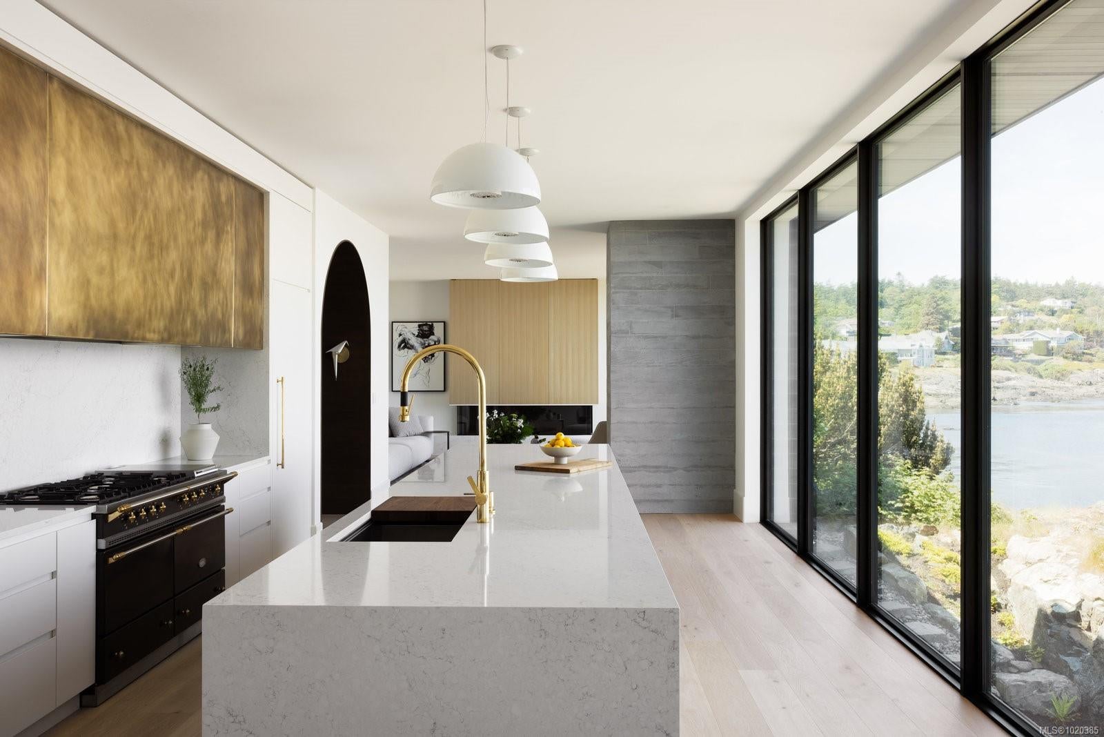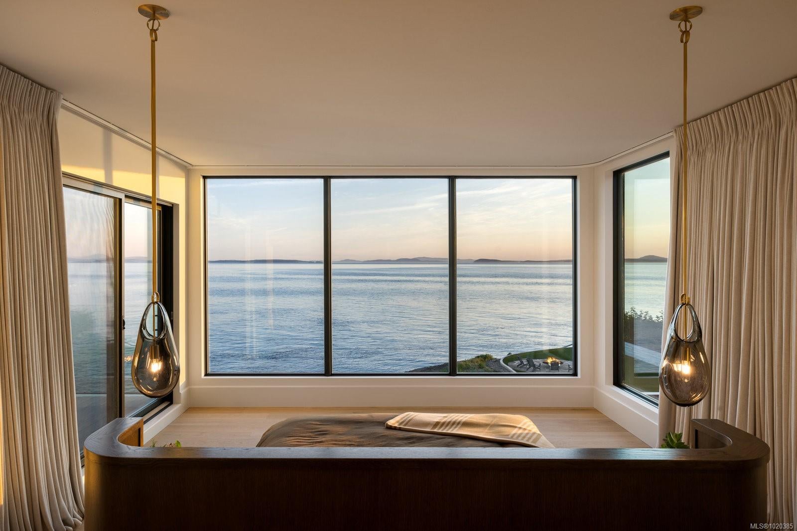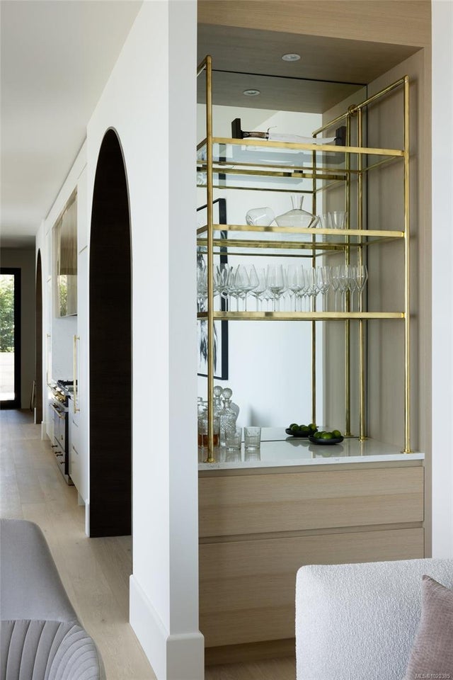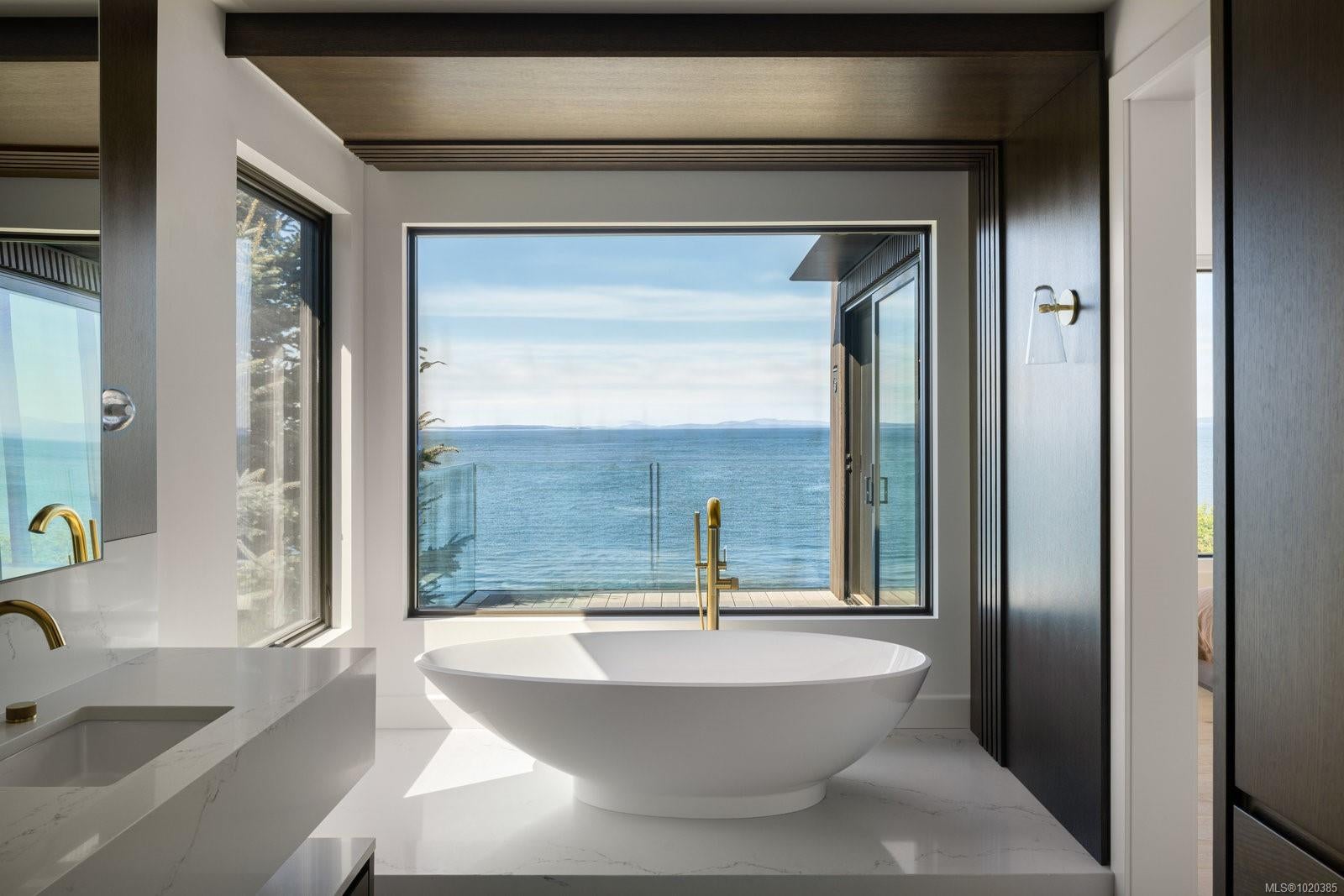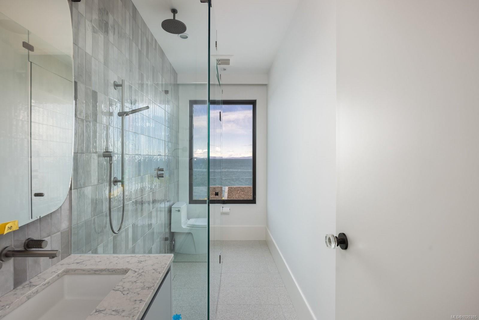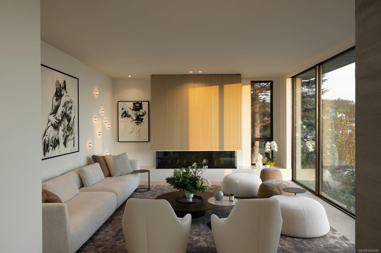 Experience Unparalleled Luxury at Vista del Mare. Perfectly positioned on over half an acre of prime waterfront in the prestigious Ten Mile Point, this architectural masterpiece by Robert Blaney, brought to life by Terry Johal Developments, promises to leave you breathless. Winner of 4 CARE Awards, including Best Single Family Detached Home, Best Innovative Feature, Best Primary Suite and Best Custom Millwork. Step into grandeur with 10-foot ceilings and a show-stopping steel and white oak floating spiral staircase that sets the tone for the rest of this captivating home. The expansive floor-to-ceiling windows on all three levels not only flood the interior with natural light but also offer uninterrupted views of Haro Strait and San Juan Island, making every room a visual delight. The neutral colour palette, accented by targeted designer lighting, creates an ambiance that is both clean and invigorating. The main floor's open-plan design maximizes these ocean views, seamlessly integrating the living, dining, and kitchen areas for effortless entertaining and everyday living. The sky-lit covered patio, adjacent to your complete outdoor kitchen with a deluxe Hestan grill and Fontana Forni pizza oven - imported from Italy- allows for al fresco dining with the backdrop of stunning seascapes, with the occasional killer whale and aurora borealis sighting. Enjoy a dip in the heated pool, followed by a rinse in the outdoor shower. Car enthusiasts will appreciate the attached three-car garage, equipped with two vehicle elevators. Above the garage, a separate, well-insulated guest suite offers a private living area, bedroom, and full bath.