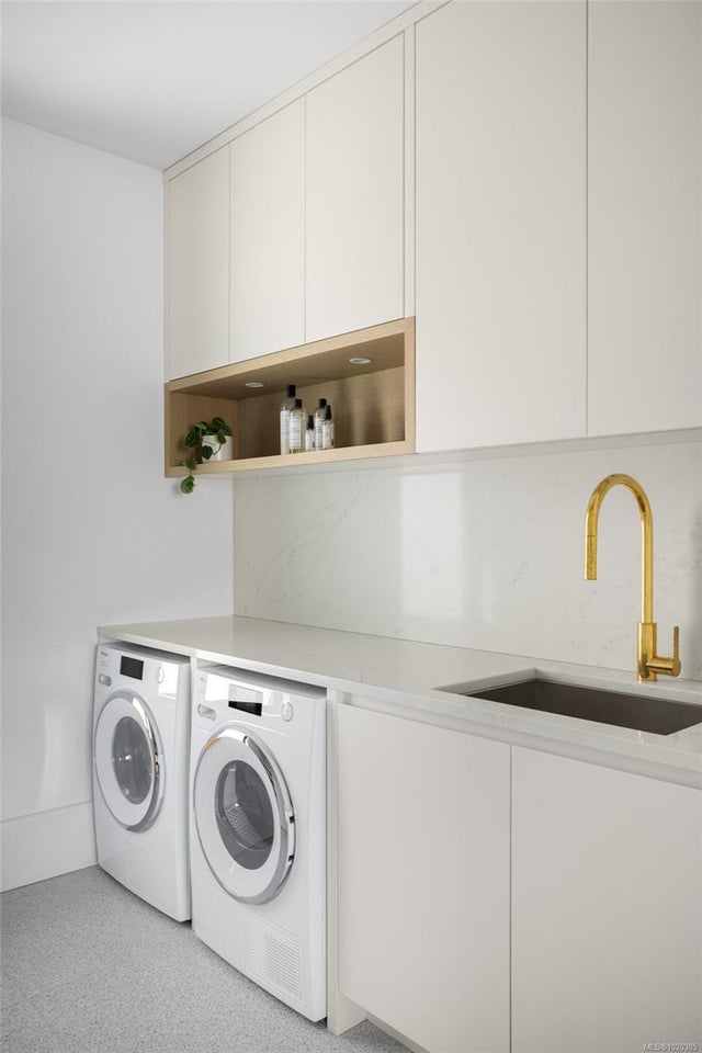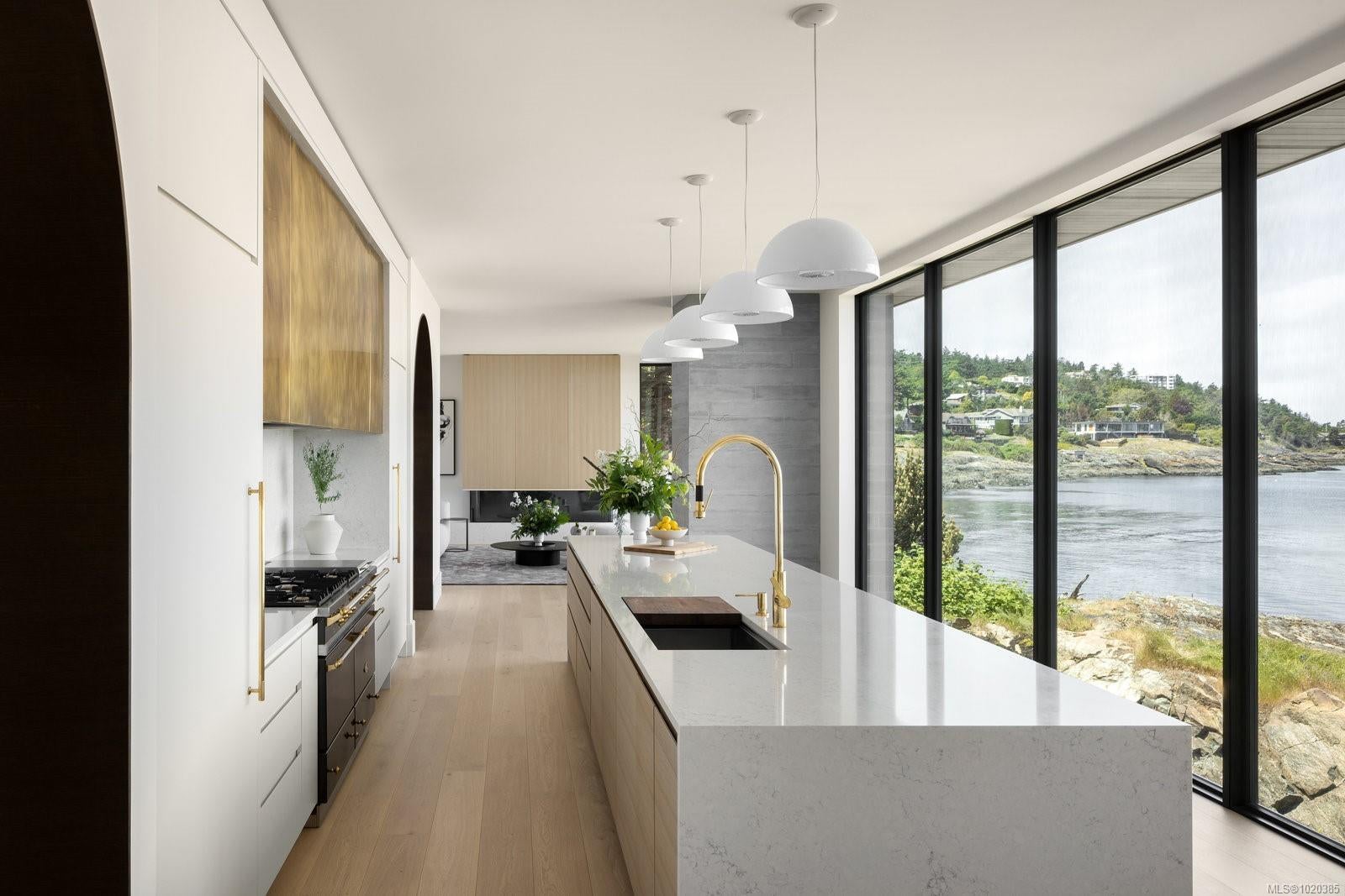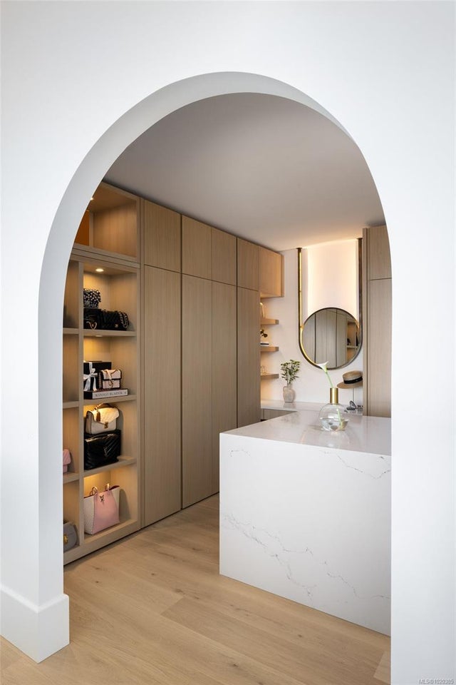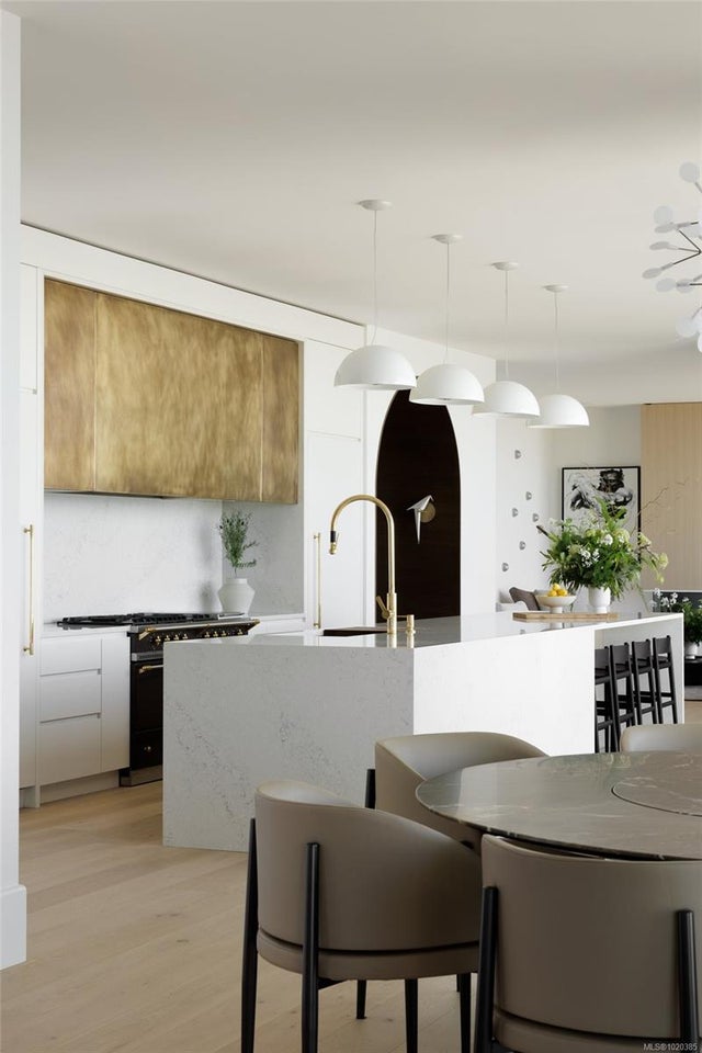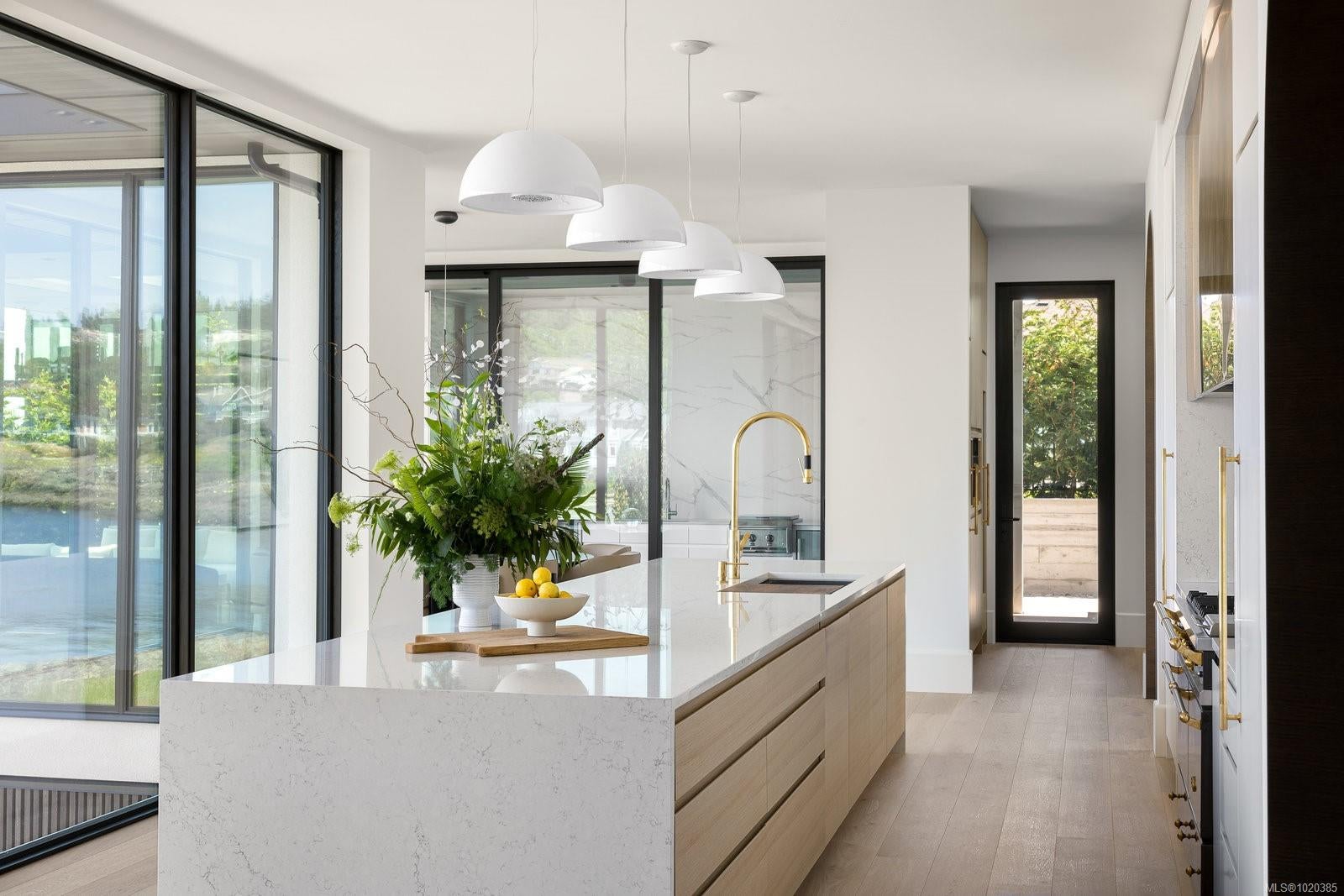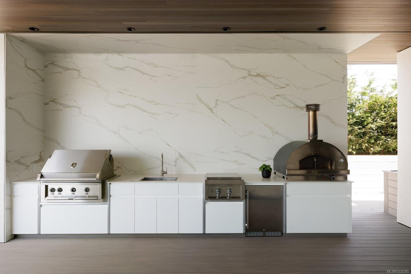 Experience Unparalleled Luxury at Vista del Mare. Perfectly positioned on over half an acre of prime waterfront in the prestigious Ten Mile Point, this architectural masterpiece by Robert Blaney, brought to life by Terry Johal Developments, promises to leave you breathless. Winner of 4 CARE Awards, including Best Single Family Detached Home, Best Innovative Feature, Best Primary Suite and Best Custom Millwork. Step into grandeur with 10-foot ceilings and a show-stopping steel and white oak floating spiral staircase that sets the tone for the rest of this captivating home. The expansive floor-to-ceiling windows on all three levels not only flood the interior with natural light but also offer uninterrupted views of Haro Strait and San Juan Island, making every room a visual delight. The neutral colour palette, accented by targeted designer lighting, creates an ambiance that is both clean and invigorating. The main floor's open-plan design maximizes these ocean views, seamlessly integrating the living, dining, and kitchen areas for effortless entertaining and everyday living. The sky-lit covered patio, adjacent to your complete outdoor kitchen with a deluxe Hestan grill and Fontana Forni pizza oven - imported from Italy- allows for al fresco dining with the backdrop of stunning seascapes, with the occasional killer whale and aurora borealis sighting. Enjoy a dip in the heated pool, followed by a rinse in the outdoor shower. Car enthusiasts will appreciate the attached three-car garage, equipped with two vehicle elevators. Above the garage, a separate, well-insulated guest suite offers a private living area, bedroom, and full bath.