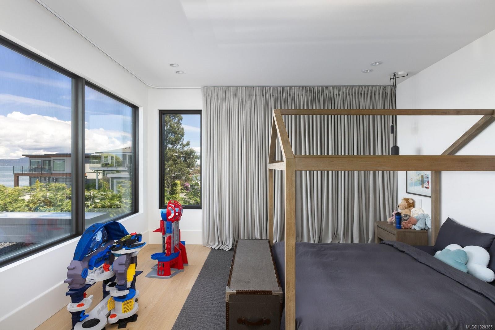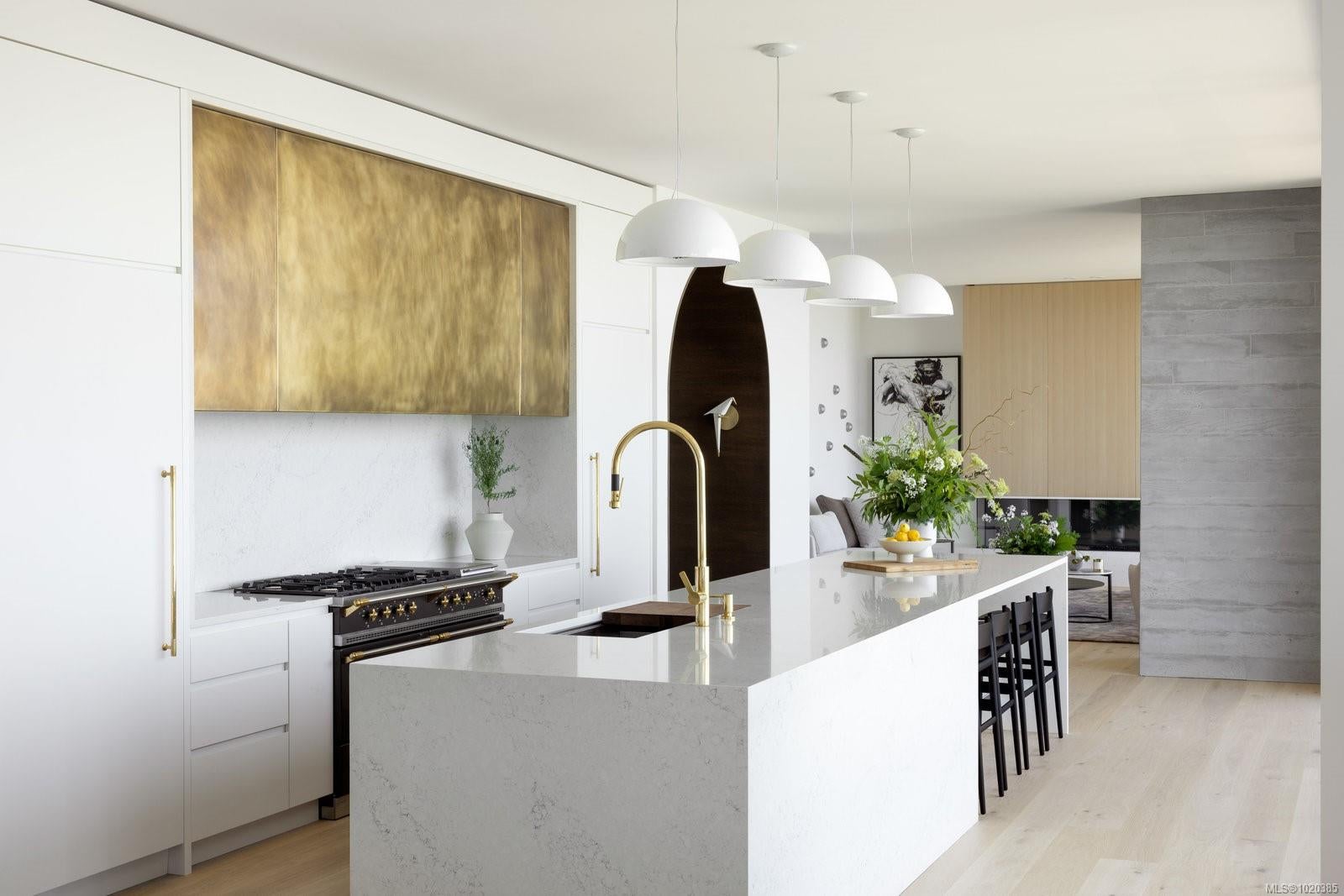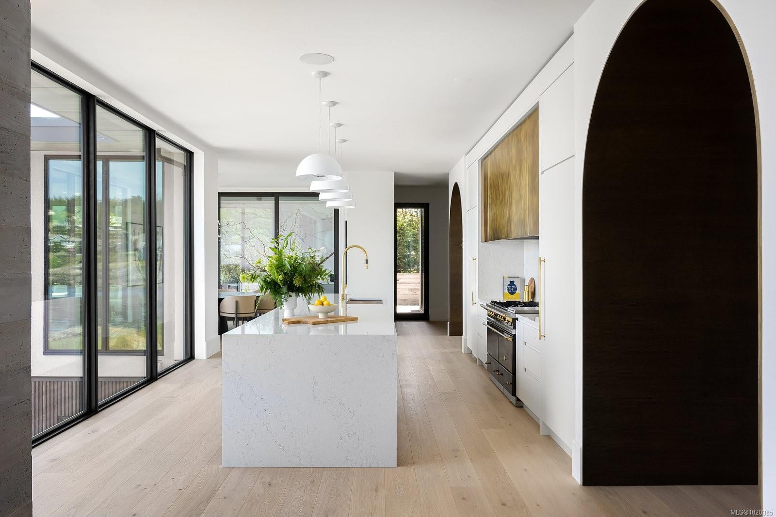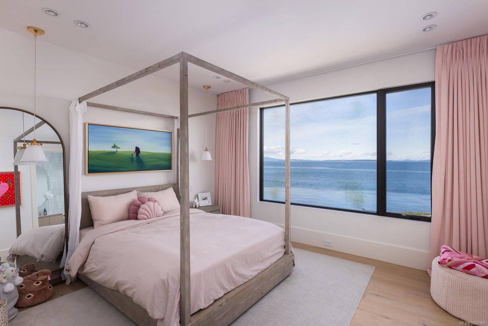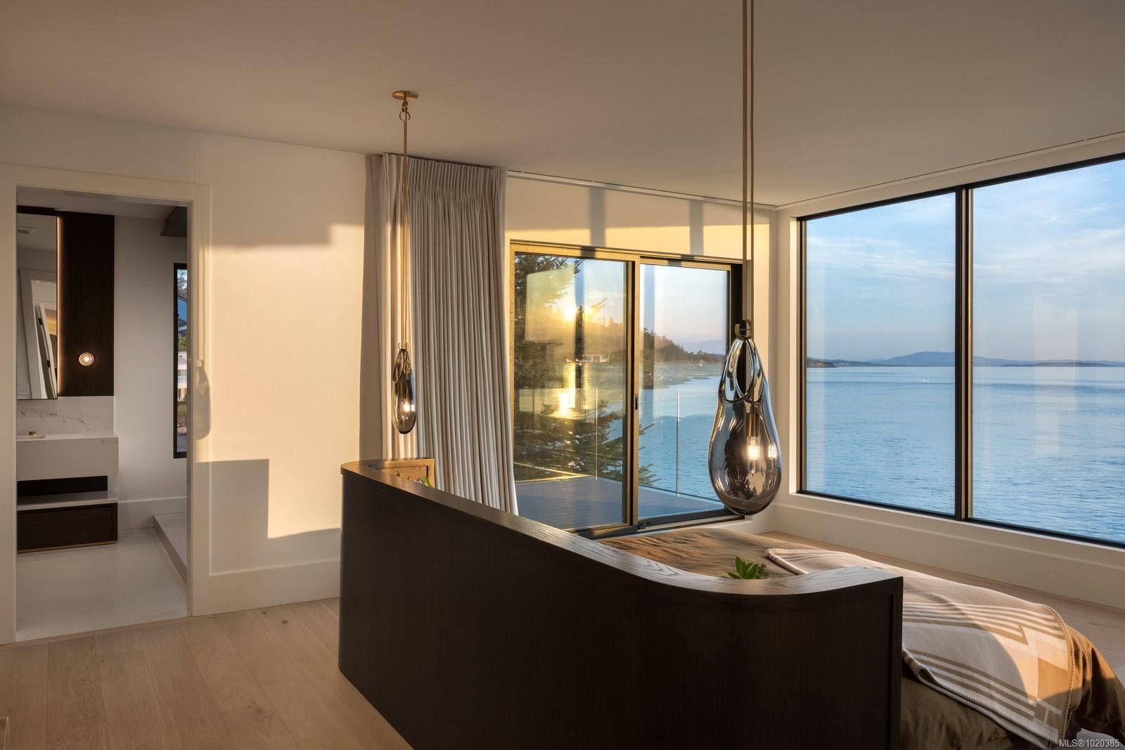 Experience Unparalleled Luxury at Vista del Mare. Perfectly positioned on over half an acre of prime waterfront in the prestigious Ten Mile Point, this architectural masterpiece by Robert Blaney, brought to life by Terry Johal Developments, promises to leave you breathless. Winner of 4 CARE Awards, including Best Single Family Detached Home, Best Innovative Feature, Best Primary Suite and Best Custom Millwork. Step into grandeur with 10-foot ceilings and a show-stopping steel and white oak floating spiral staircase that sets the tone for the rest of this captivating home. The expansive floor-to-ceiling windows on all three levels not only flood the interior with natural light but also offer uninterrupted views of Haro Strait and San Juan Island, making every room a visual delight. The neutral colour palette, accented by targeted designer lighting, creates an ambiance that is both clean and invigorating. The main floor's open-plan design maximizes these ocean views, seamlessly integrating the living, dining, and kitchen areas for effortless entertaining and everyday living. The sky-lit covered patio, adjacent to your complete outdoor kitchen with a deluxe Hestan grill and Fontana Forni pizza oven - imported from Italy- allows for al fresco dining with the backdrop of stunning seascapes, with the occasional killer whale and aurora borealis sighting. Enjoy a dip in the heated pool, followed by a rinse in the outdoor shower. Car enthusiasts will appreciate the attached three-car garage, equipped with two vehicle elevators. Above the garage, a separate, well-insulated guest suite offers a private living area, bedroom, and full bath.