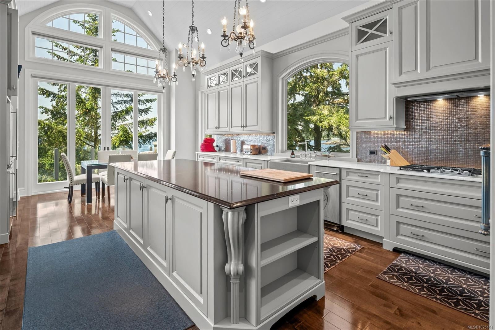 UNPARALLELED OCEANFRONT LUXURY WITH UNOBSTRUCTED VIEWS! This custom, architecturally designed (by Zebra Group) oceanfront estate is nestled perfectly on the best lot in the strata, along the pristine shores of prestigious Silver Spray. Inspired by the landscape & coastal elements, this stunning 5,174sf, 4 bed, 6 bath home, priced well below replacement value, is truly a masterpiece. Perched near the entrance to Canada's southernmost harbour, enjoy sweeping views of Juan de Fuca Strait to the majestic Olympic Mtns, creating a breathtaking backdrop for every moment. Bright, open floor plan enhanced by airy 13'10" ceilings, fine finishing details & gleaming floors awash in light thru a profusion of windows, blending indoor w/over 1800sf of outdoor living. The privacy, ambience & stunning vistas will simply amaze! A versatile floor plan offers flexibility to suit your lifestyle. Dbl garage, lush garden & oceanfront entertainment area w/firepit! Simply the finest in luxury oceanfront living